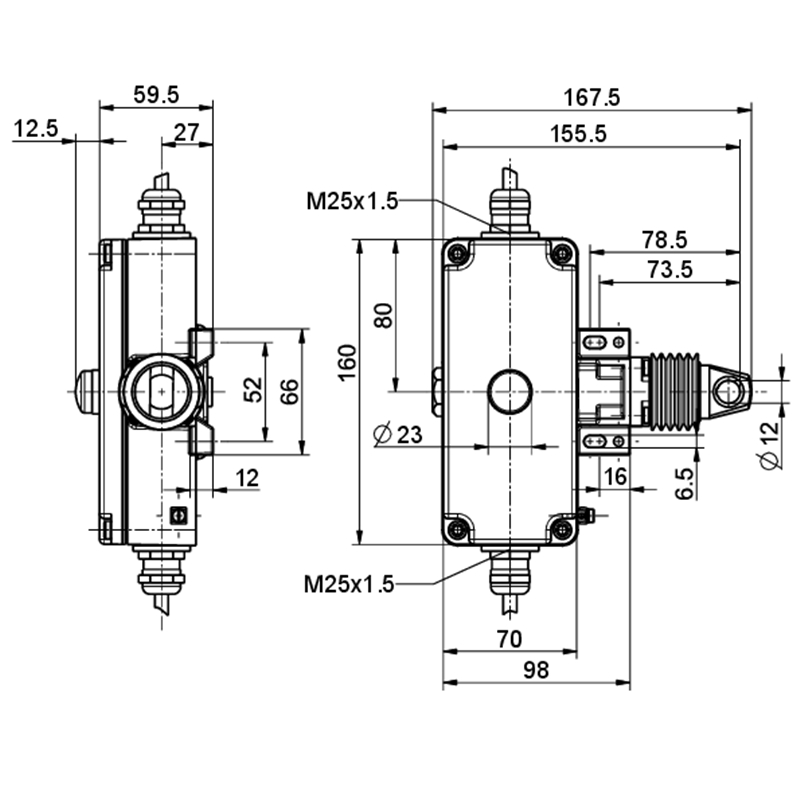 - Ex II 2D Ex tb IIIC T80 °C/T95 °C Db