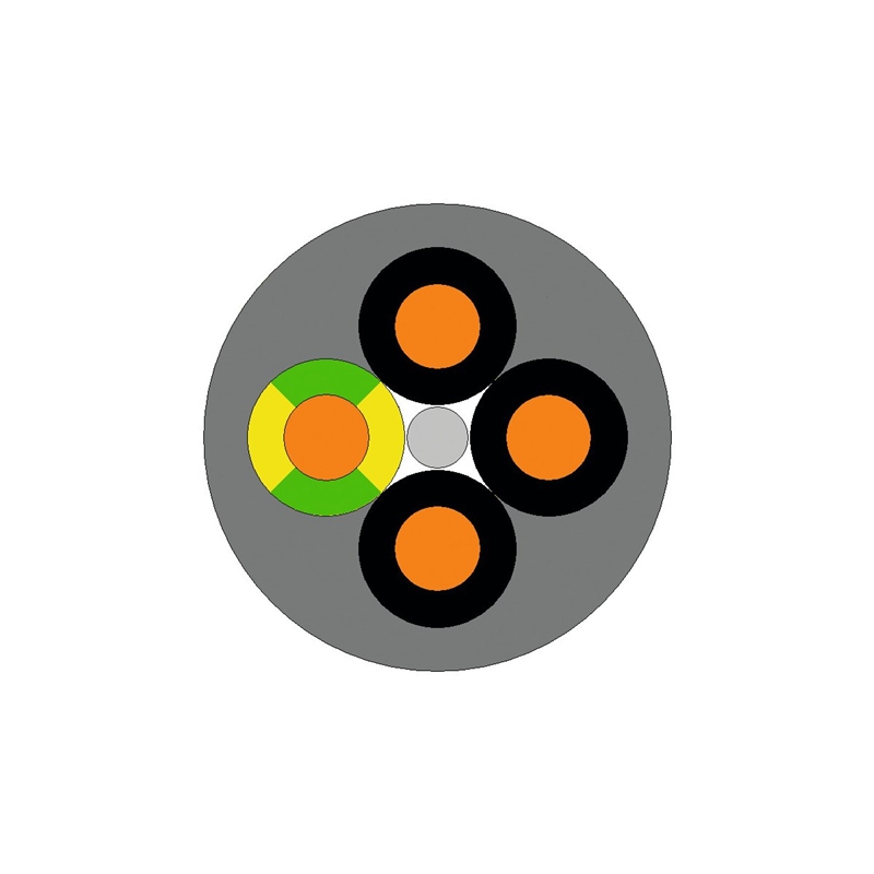 Câble de raccordement et câble de commande; Composition: 4G1,5; Nombre de conducteurs: 4; Section nominale du conducteur: 1,5 mm²; Tension nominale: U0/U: 300/500 V CA rms selon IEC; Tension d'essai: 4 kV; Diamètre extérieur nominal: 7,2 mm; Forme du câble: Rond; Matériau de base de la gaine extérieure: PVC; Couleur de la gaine extérieure: Gris; Identification des conducteurs: Numéros; Domaine d'utilisation: Flexible, Pose fixe, Chaîne porte-câbles, Torsion; Conducteur de protection: Oui; Température, pose fixe: -40 °C à 80 °C; Température, déplacement occasionnel: -15 °C à 70 °C; Température, dynamique en flexion continue: -5 °C à 70 °C; Numéro d'enregistrement VDE: 7030; Série: ÖLFLEX® CLASSIC 110