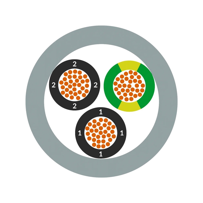 • La construction du câble permet une utilisation flexible et constamment mobile dans les parties mobiles des machines et dans la chaîne porte-câbles.