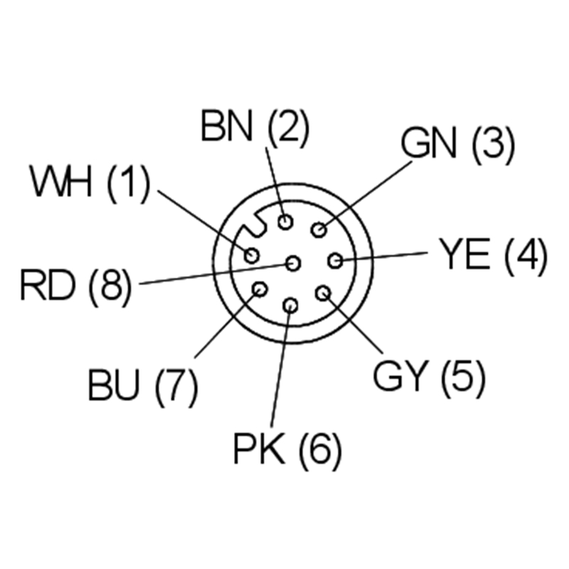• Raccordement A: Connecteur M12, femelle, coudé, 8 pôles