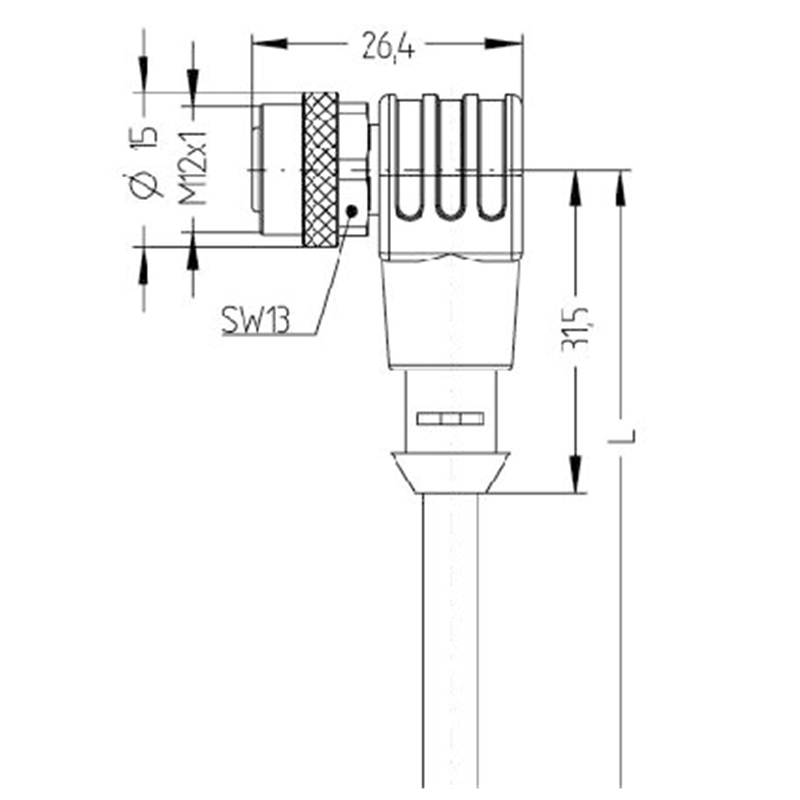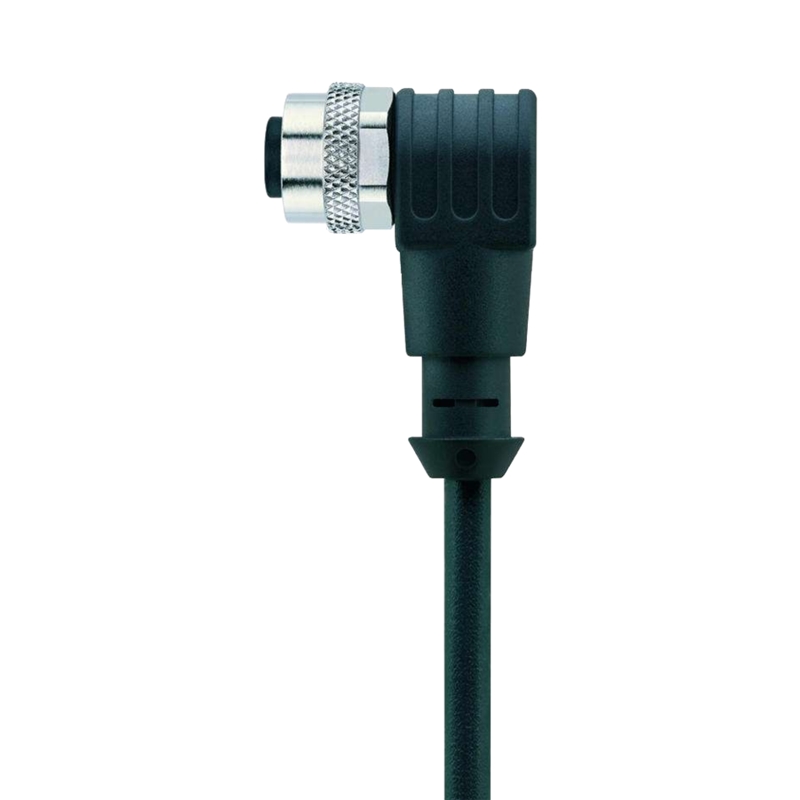 Connecteur / Câble de raccordement; Type: Câble de connexion M12 x 1, surmoulé; Raccordement A: Connecteur M12, femelle, coudé, 8 pôles; Raccordement B: Extrémité de câble libre; Câble: 10.00 m, PVC, 8 fils (8 x 0.25 mm²), noir; Blindage: Non blindé; Compatible chaînes porte-câbles: Non; Tension d'emploi: max. 30 V AC/DC; Courant nominal: 1,5 A; Classe de protection: IP67; Température ambiante: -30 °C … +80 °C; (Ancien code-article: 01.36.2221)