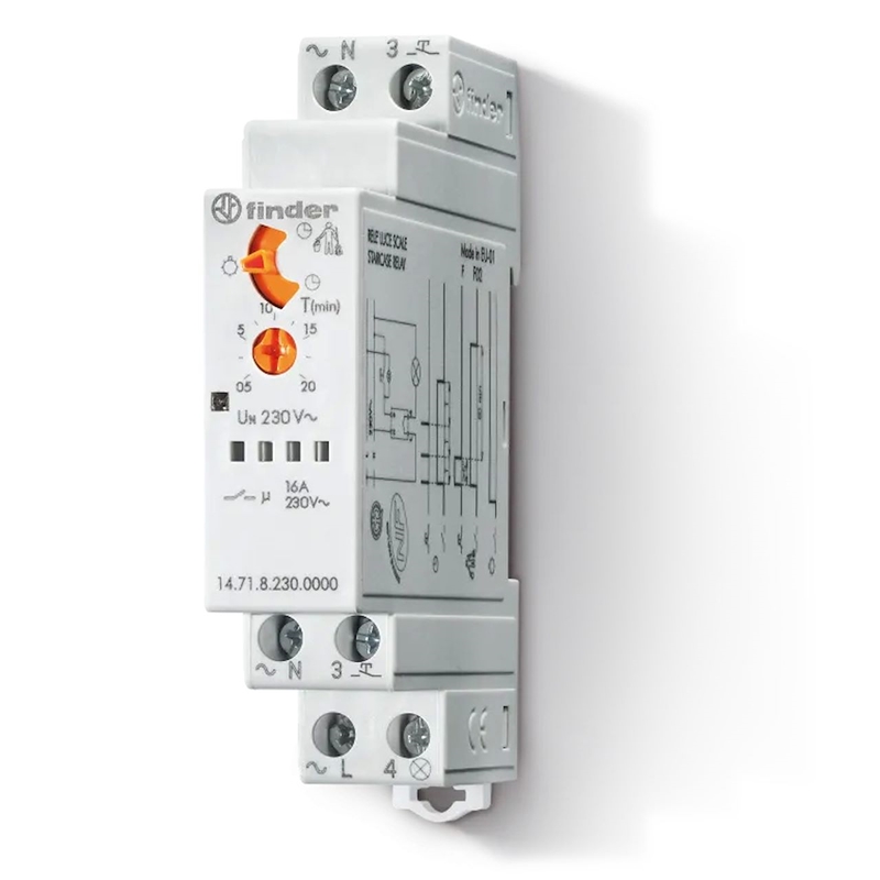 Minuterie cage d'escalier, 3 fcts, 1NO 16A 230V AC, 30s à 20mn