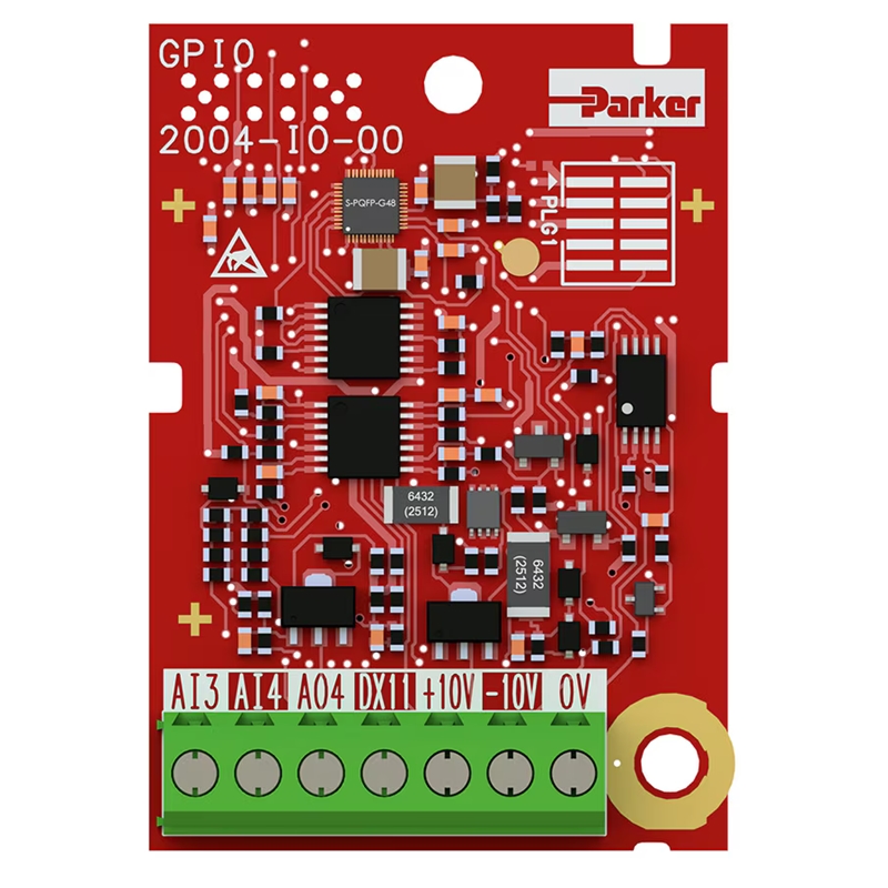 Carte d'option des E/S à usage générale (GPIO) AC20; Entrées analogiques: 2x entrées analogiques (±10V, 0-10V); Sortie analogique: 1x entrée analogique (±10V, 0-10V); Entrée/sortie digitale: Entrée/sortie digitale 1 (24V configurable); Tensions de référence: Références de +/- 10V