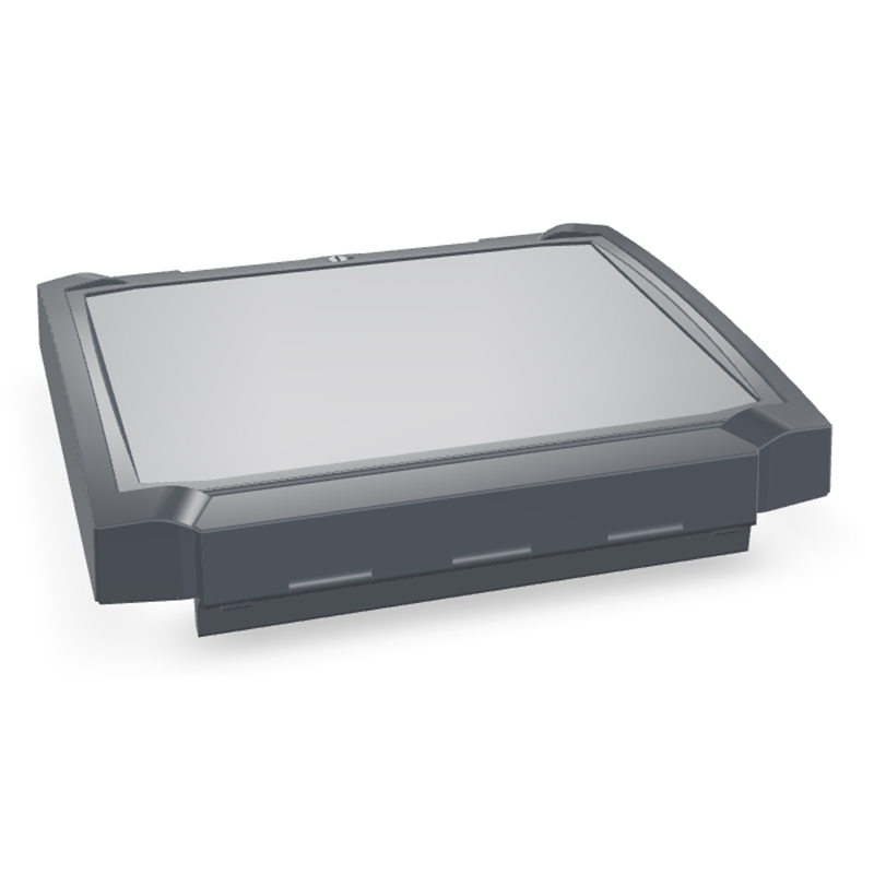 Couvercle frontal doté d’une charnière, avec surface pour clavier membrane en une partie