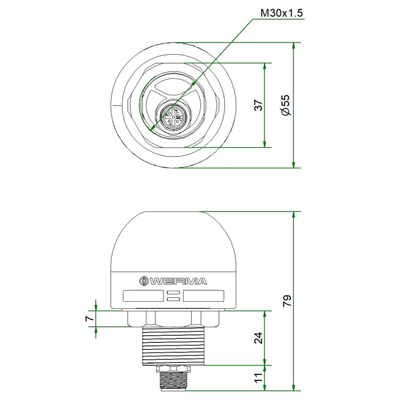 MC55 Touch NPN - Dôme Multicolore Buzzer 85dB - 24VDC - 3 couleurs - Encastré M12 / Feu 3 couleurs + buzzer 24VDC - Connecteur M12 - IP65, Montage M30