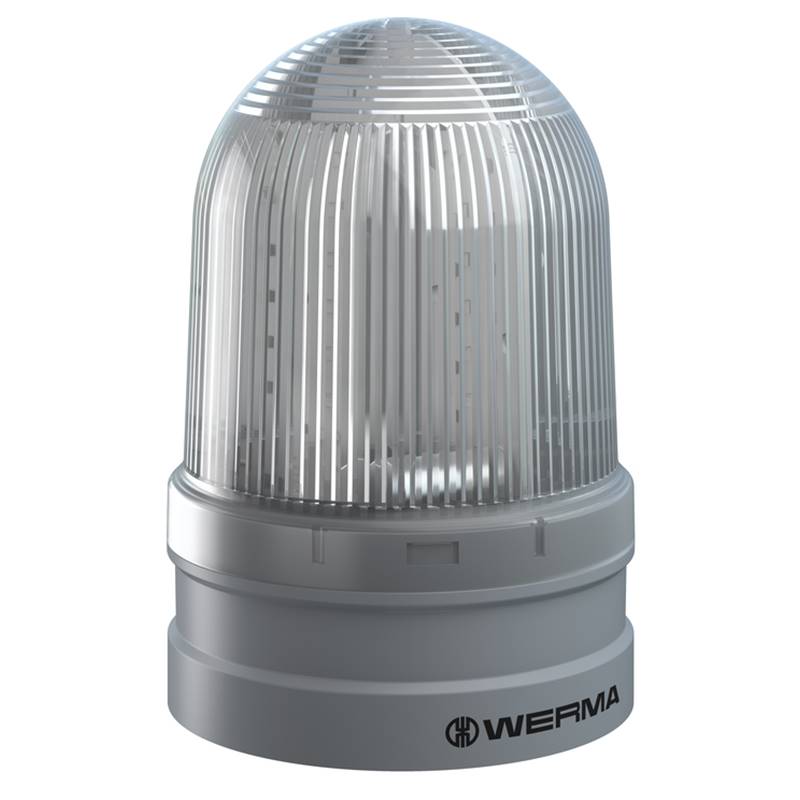 Maxi Rotating; Tension: 12-24VAC/DC; Source de lumière: LED; Forme du signal: Rotatif; Fréquence de rotation: 180 U/min; Couleur de lumière: Blanche; Couleur de la calotte: Transparente; Raccordement: Bornes Push-In; Diamètre: 120 mm; Hauteur: 173 mm; Couleur du boîtier: Gris; Catégorie de protection: IP66; Température de service: -30°C ... +60°C; Série: EvoSIGNAL Maxi
