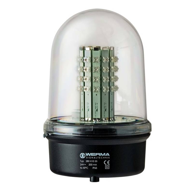 Feu d'obstacle DEL BM 12-50VDC RD; Tension: 12-50V DC; Forme du signal: Durée; Couleur de lumière: Rouge; Couleur de la calotte: Clair; Raccordement: Borne à vis; Fixation: Montage à plat; Diamètre: 142 mm; Hauteur: 218 mm; Couleur du boîtier: Noir; Catégorie de protection: IP65; Température de service: -30°C ... +50°C; Série: 280
