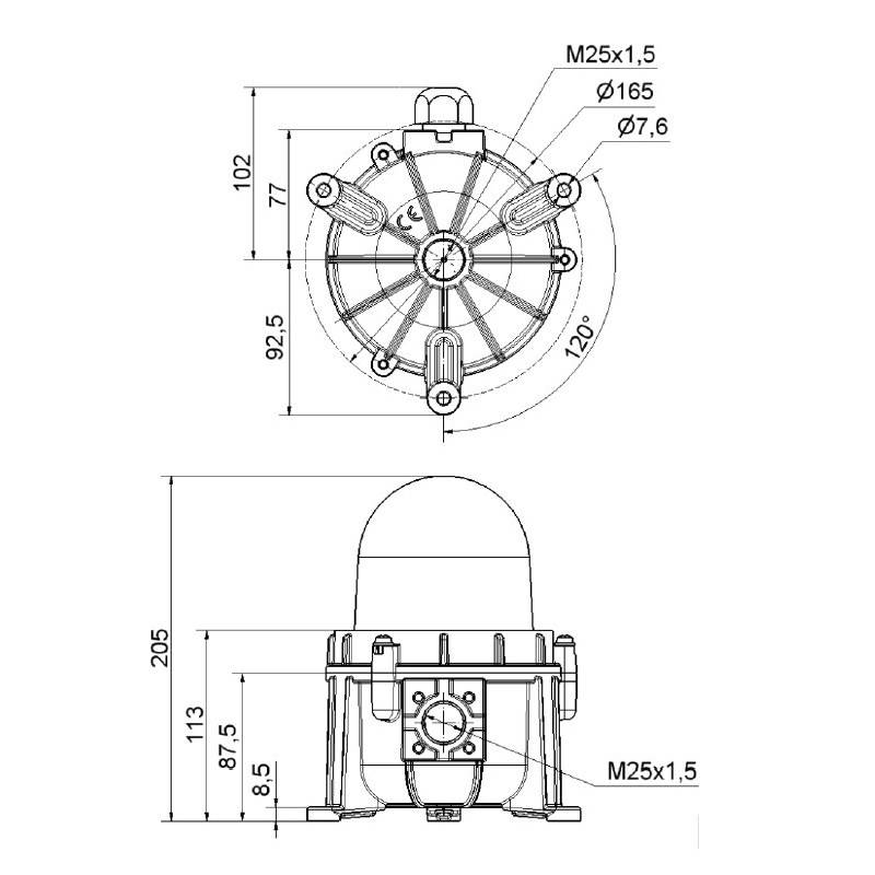 • Feu d´obstacle à LEDs très robuste avec boîtier en métal et calotte en verre