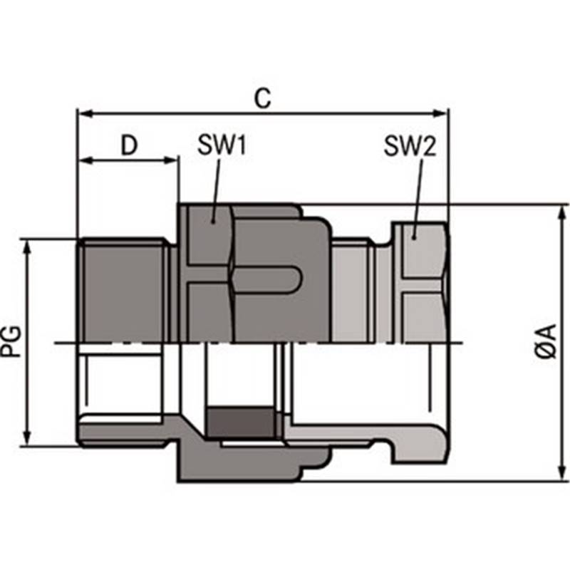 Presse-étoupe PG plat en plastique, avec lèvres d'étanchéités latérales à raccord automatique; Système de raccord vissé: Passage simple; Type de filetage: PG; Dimension: 29; Matière: Polystyrène; Couleur: Gris clair; Largeur du câble plat min./ max.: 15.0 / 27.0; Épaisseur du câble min./ max.: 4.0 - 11.5 mm; Taille de clé SW: 42.0 / 41.0; Longueur totale, C: 45.0 mm; Longueur de filetage D: 11 mm; Indice de protection: IP 54; Température ambiante: -20 ... 60 °C; Homologations-Normes: CE; Pièces / conditionnement: 25; Série: SKINDICHT® SVFK