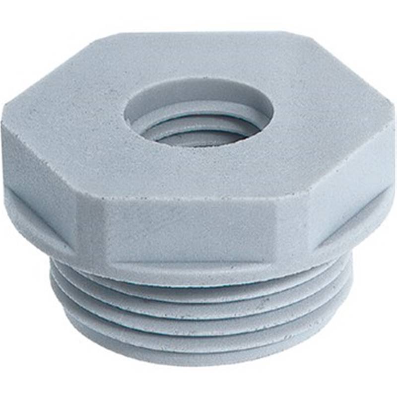 Réducteur renforcée en polyamide pour une stabilité mécanique élevée, avec un filetage de raccordement métrique; Système de raccord vissé: Passage simple; Type de filetage: Métrique; Filetage, mâle M1: 63 x 1,5; Type de filetage: Métrique; Filetage, femelle M2: 32 x 1,5; Matière: Polyamide; Propriétés: Renforcé par fibre de verre; Couleur: Gris clair; Taille de clé SW: 68; Filetage utile D mm: 15; Température ambiante: -40 ... 100 °C; Pièces / conditionnement: 5; Série: SKINDICHT® KU-M