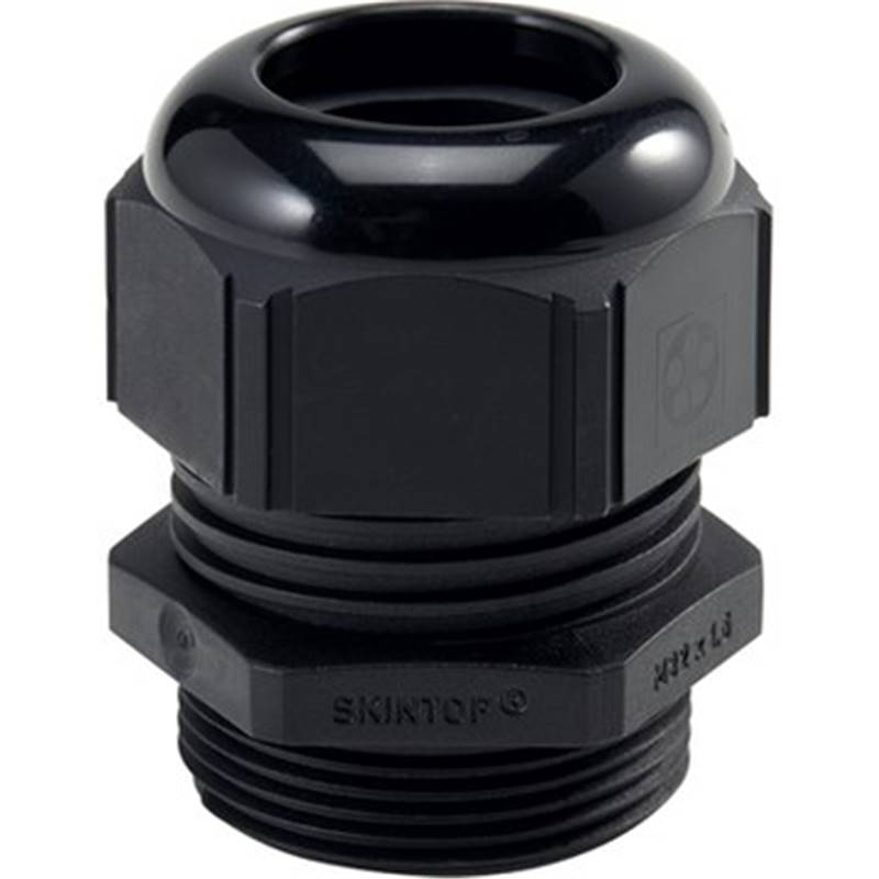 Presse-étoupe en polyamide à résistance accrue aux huiles et gammes de serrage variables, protection antivibration et anti-traction permanente; Système de raccord vissé: Passage simple; Type de filetage: PG; Dimension: 36; Matière: Polyamide; Couleur: Noir (RAL 9005); Plage de serrage ØF (mm): 24 - 32; Taille de clé SW (mm): 53; Longueur totale, C (mm): 66.0; Longueur de filetage D (mm): 13,3; Indice de protection: IP 68 - 5 bar; Température ambiante: -20 ... 80°C; Pièces / conditionnement: 10; Série: SKINTOP® ST