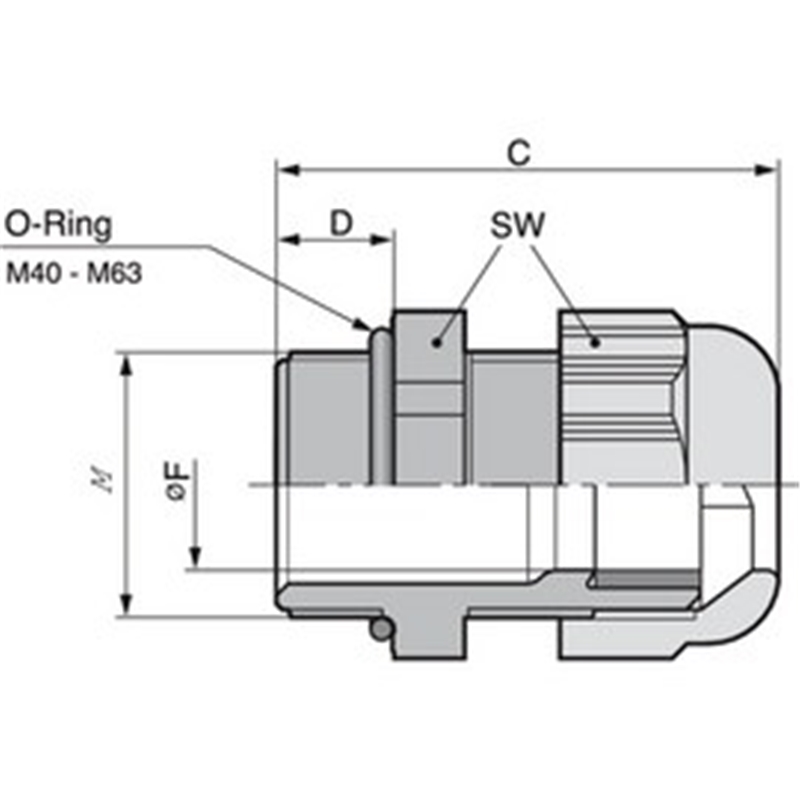 Presse-étoupe en plastique à résistance accrue aux huiles et gammes de serrage variables, protection antivibration, pour plateformes off-shore; Système de raccord vissé: Passage simple; Type de filetage: Métrique; Dimension: 25x1,5; Matière: Polyamide; Couleur: Gris argenté (RAL 7001); Plage de serrage ØF (mm): 9 - 14; Taille de clé SWF (mm): 27; Longueur totale, CF (mm): 47.0; Longueur de filetage DF (mm): 13; Indice de protection: IP 68 - 5 bar; Température ambiante: -40 ... 100 °C; Homologations-Normes: CE / CULUS / VDE / cRUus / GGVS / DNV; Pièces / conditionnement: 50; Série: SKINTOP® ST-M ISO