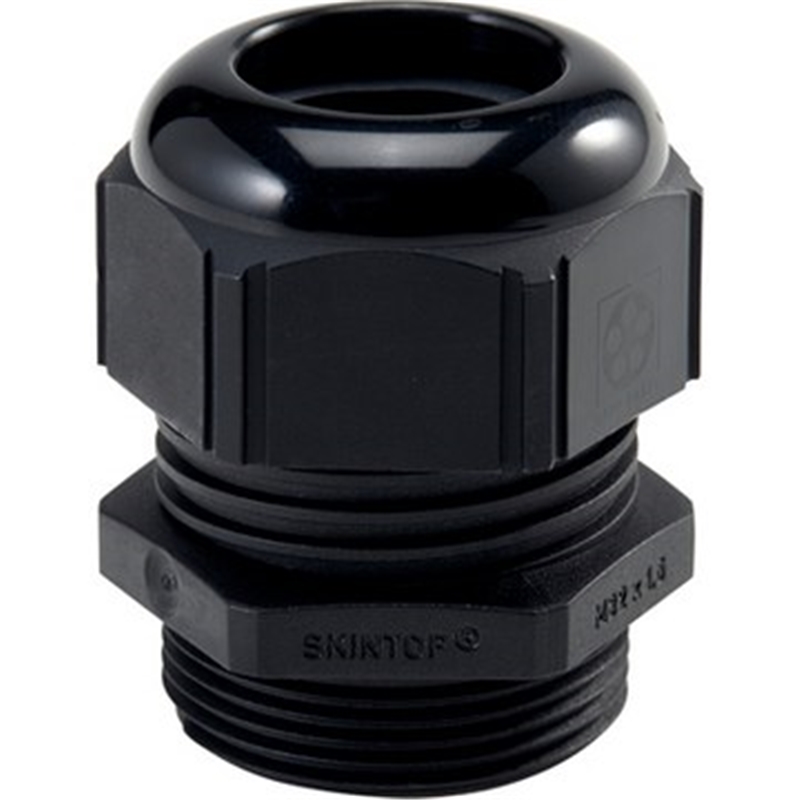 Presse-étoupe en plastique à résistance accrue aux huiles et gammes de serrage variables, protection antivibration, pour plateformes off-shore; Système de raccord vissé: Passage simple; Type de filetage: Métrique; Dimension: 16x1,5; Matière: Polyamide; Couleur: Noir (9005); Plage de serrage ØF (mm): 3,5 - 8; Taille de clé SW (mm): 19; Longueur totale, C (mm): 40.0; Longueur de filetage D (mm): 12; Indice de protection: IP 68 - 5 bar; Température ambiante: -40 ... 100 °C; Homologations-Normes: CE / CULUS / VDE / cRUus / GGVS / DNV; Pièces / conditionnement: 100; Série: SKINTOP® ST-M ISO