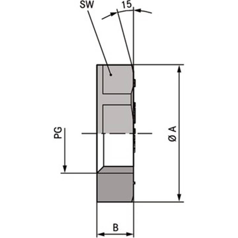 Contre-écrous renforcés par fibre de verre, pour une stabilité mécanique maximale, pour le verrouillage dans les orifices sans filetage; Système de raccord vissé: Passage simple; Type de filetage: PG; Dimension: 9; Matière: Polyamide; Propriétés: Renforcé par fibre de verre; Couleur: Gris argenté (RAL 7001); Taille de clé SW: 22; Température ambiante: -20 ... 100 °C; Homologations-Normes: CE / RU; Pièces / conditionnement: 100; Série: SKINTOP® GMP-GL