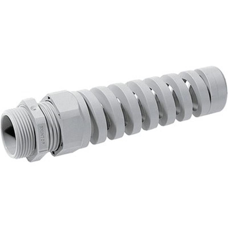 Presse-étoupe en plastique avec protection antiflexion et antitorsion, pour protéger les câbles flexibles, pour pièces de machine mobiles; Système de raccord vissé: Passage simple; Type de filetage: Métrique; Dimension: 32x1,5; Matière: Polyamide; Couleur: Gris perle (RAL 7035); Plage de serrage ØF: 11 - 21 mm; Taille de clé SW: 36; Longueur totale, C: 149 mm; Longueur de filetage D: 10 mm; Indice de protection: IP 68 - 5 bar; Plage de température: -20°C à +100°C; Homologations-Normes: CE / CULUS / VDE / cRUus / DNV; Pièces / conditionnement: 25; Série: SKINTOP® BS-M