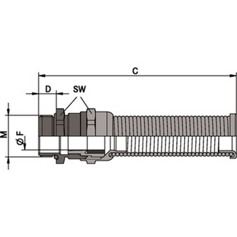Presse-étoupe durable avec protection antiflexion permanente sous sollicitations mécaniques élevées; Système de raccord vissé: Passage simple; Type de filetage: Métrique; Dimension: 25x1,5; Matière: Laiton; Couleur: Argent; Taille de clé SW: 29; Longueur totale, C: 109.0 mm; Longueur du filetage D: 8 mm; Indice de protection: IP 68; Température ambiante: -30 ... 100°C; Homologations-Normes: CE; Pièces / conditionnement: 25; Série: SKINTOP® BS-M METAL