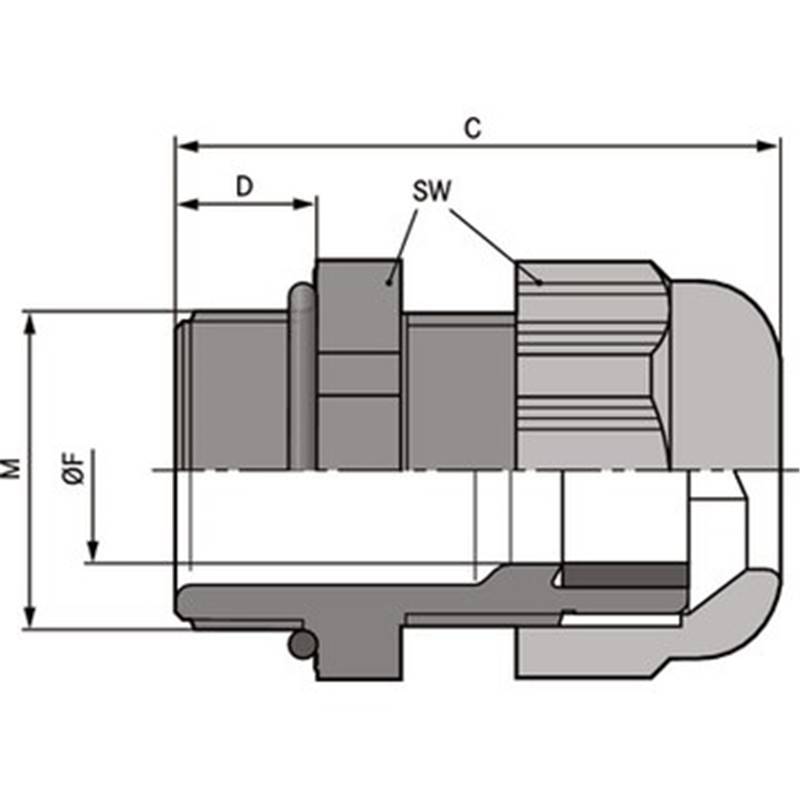 Presse-étoupe métrique en plastique avec haut degré de protection et insert d'étanchéité réducteur, antidéflagrant; Système de raccord vissé: Passage simple; Type de filetage: Métrique; Dimension: 32x1,5; Matière: Polyamide; Couleur: Bleu (RAL 5015); Plage de serrage ØF: 9 - 15 mm; Taille de clé SW: 36; Longueur totale, C: 47 mm; Longueur de filetage D: 10 mm; Indice de protection: IP 68 - 10 bar; Plage de température: -20°C à +80°C; Certifications: CE 0637 Ex II 2G, Ex eb IIC Ex II 1D, Ex ta IIIC, IECEx IBE 13.0027X; Série: SKINTOP® KR-M ATEX plus