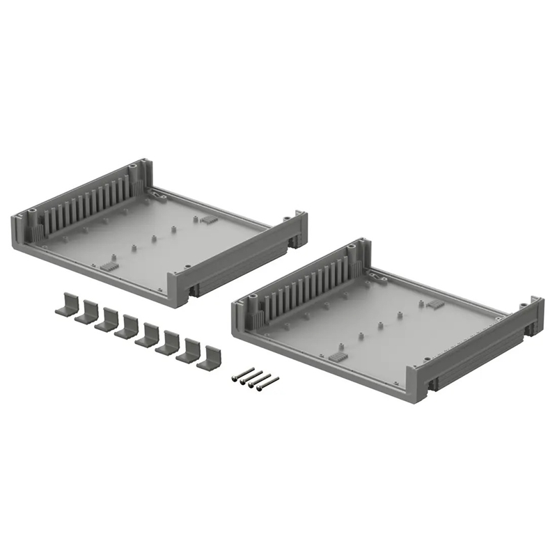 Boîtier fermé; Dimensions: 124.2 x 198.9 x 72.4 mm; Coloris: Gris clair, analogue à RAL 7035; Type de protection: IP 40 ; Matériau du boîtier: ABS; Fourniture: 2 demi-coquilles, 8 caches, 4 pieds en caoutchouc, 4 vis.; Série: Ultramas