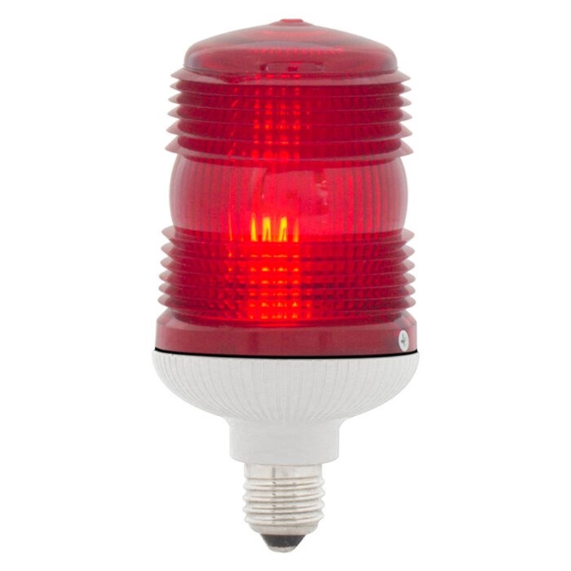 Feu de taille moyenne conçu pour applications industrielles; Feu au xénon; Couleur du dôme : rouge; Effet lumineux : feu à éclats; Base de fixation de type E (culot); Degré de protection : IP54; Tension d'alimentation : V12/24ACDC; Couleur de la base : grise