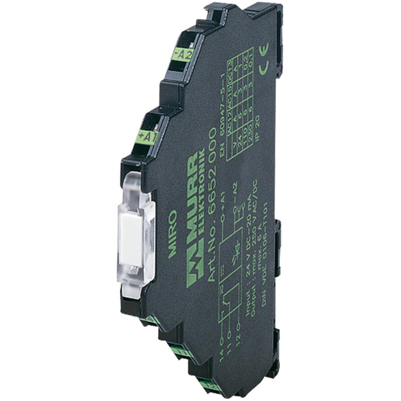 Module-relais, 24 V DC, relais de sortie, 1 contact NO; Mode de commutation: 1 contact NO; Tension d'alimentation: 24 V AC/DC; Raccordement: Bornes à ressort; Mode de fixation: à enclipser sur rail DIN (EN 60715); Plage de température: -20...+55 °C; Dimensions H × L × P: 91×6.2×70 mm; Indicateur à LED: LED (verte)