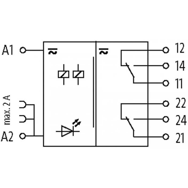 Module-relais d'entrée DPDT 6A-250VAC/DC, Bornes à ressort, 24VAC/DC