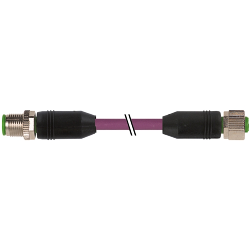 Connecteur / Cable de raccordement; Type: Câble de connexion, M12 x 1 / M12 x 1; Type de signal: DeviceNet, CANopen; Raccordement A: Connecteur M12, femelle, droit, 5 pôles, codé-A; Raccordement B: Connecteur M12, mâle, droit, 5 pôles, codé-A; Câble: 7.50 m, PUR, AWG24, 4 fils (2x0,25+2x0,34 mm²), violet; Blindage: Blindé; Compatible chaines porte-câbles: Oui (1 Mio. @ 25 °C); Matériau de la tête: PUR, noir; Matériau verrouillage: Zinc moulé, nickelé; Tension de service max.: 60 VAC/DC; Tension de service (listé UL): 30 VAC/DC; Courant de service max. par contact: 4 A; Degré de protection: IP65, IP66K, IP67 (EN CEI 60529); Température de service: -25 °C ... 85 °C; Température de service: (statique): -40 °C ... 80 °C ; Température de service: (dynamique): -30 °C ... 70 °C