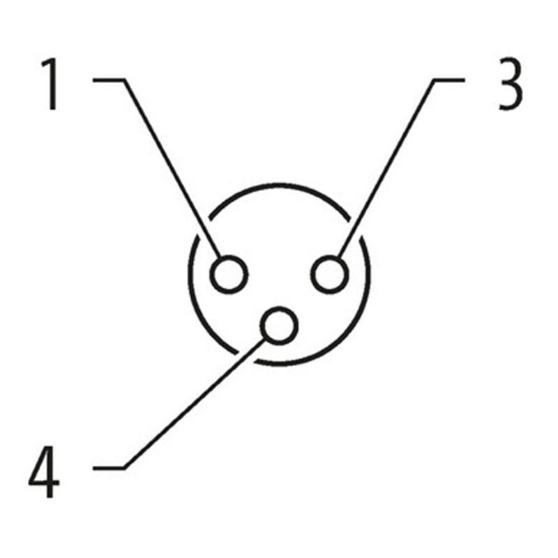 • Raccordement B: Connecteur M12, mâle, droit, 3 pôles, codé-A