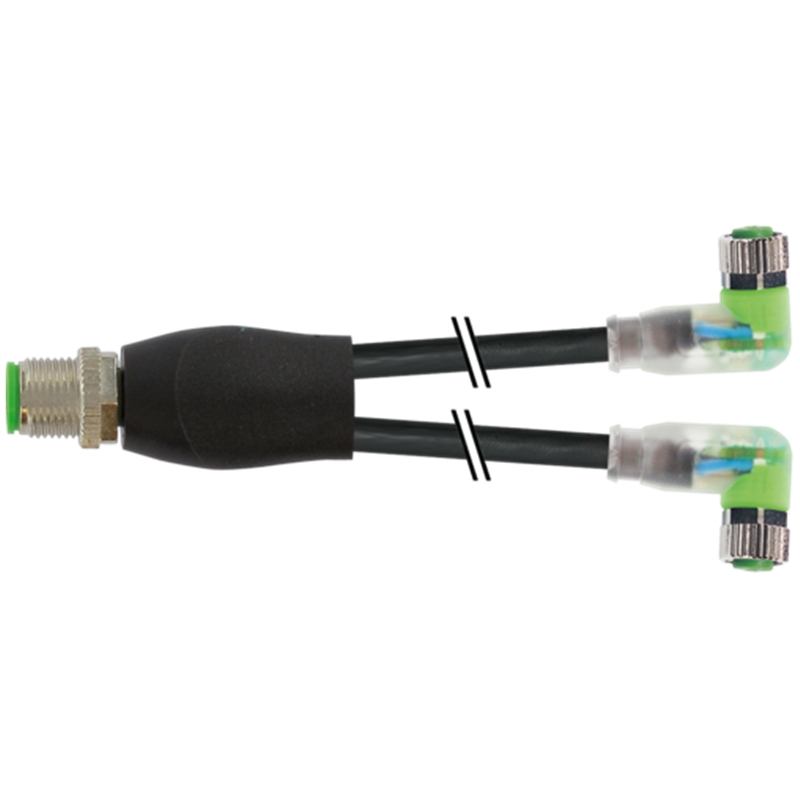 Répartiteur en Y M12 mâle / M8 femelle 90° codé A LED; Câble PUR 3x0.25 noir UL/CSA+chaine porte-câble 1m