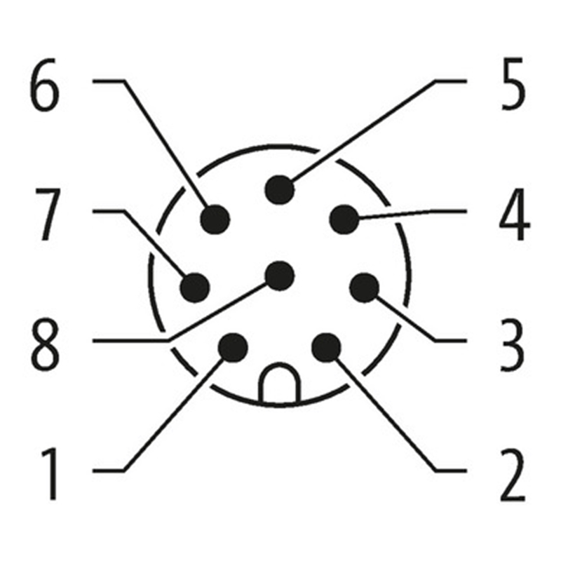 • Raccordement A: Connecteur M12, femelle, droit, 8 pôles, codé-A