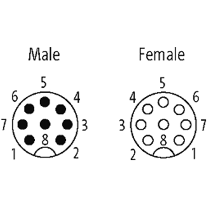 • Raccordement B: Connecteur M12, mâle, droit, 8 pôles, codé-A