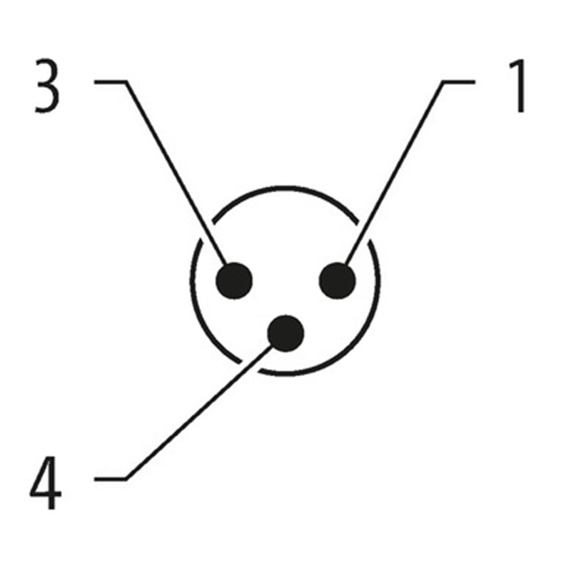 • Raccordement A: Connecteur M8, femelle, droit, 3 pôles