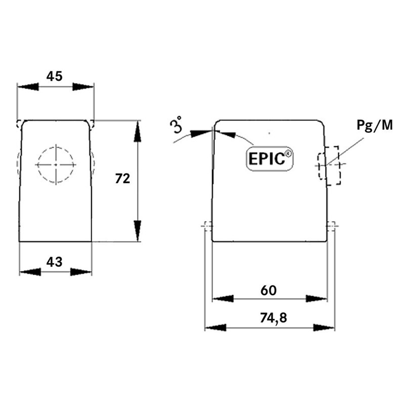 Boîtier H-B : capot (entrée de câble latérale, ergots pour simple levier, version haute) PG29