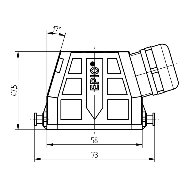 Boîtier H-B: capot (entrée de câble latérale, ergots pour simple levier); Plage: 9 - 17 mm; Col: Oui; Matériau:- Boîtier: Zinc moulé sous pression nickelé- Levier et ergots: Acier inox- Joint: NBR- Presse-étoupe: Laiton nickelé; Indice de protection: IP 65 (verrouillé); Plage de température: -40°C à + 110°C; Pièces / conditionnement: 1; Série: EPIC® ULTRA H-B 6 TS LB