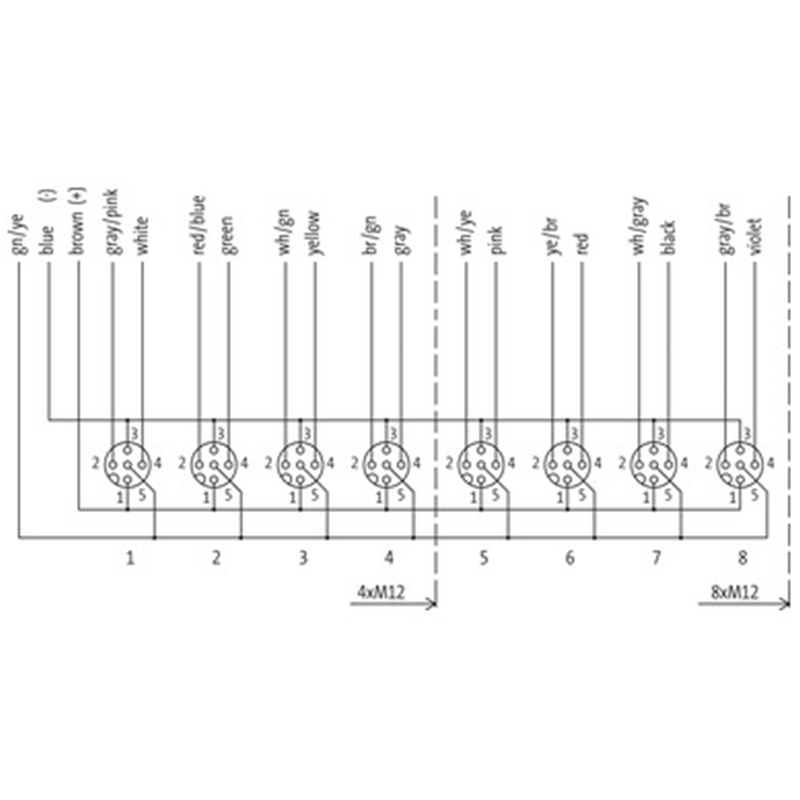 • Type: 8xM12, 5 pôles, câble préconfectionné