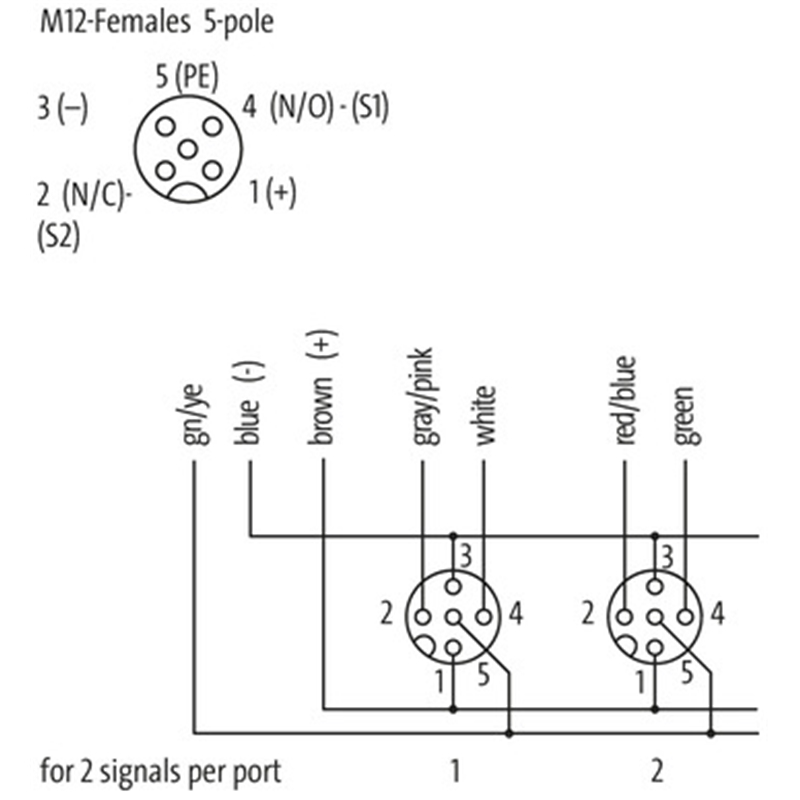 • Type: 8xM12, 5 pôles, câble préconfectionné