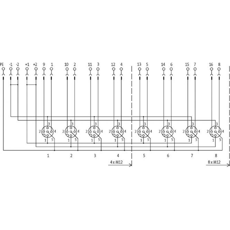 Répartiteur étanche Exact12, 8xM12, 5-pol., couvercle débrochable sans LED, jusqu’à 125 V AC/DC, bornes à vis