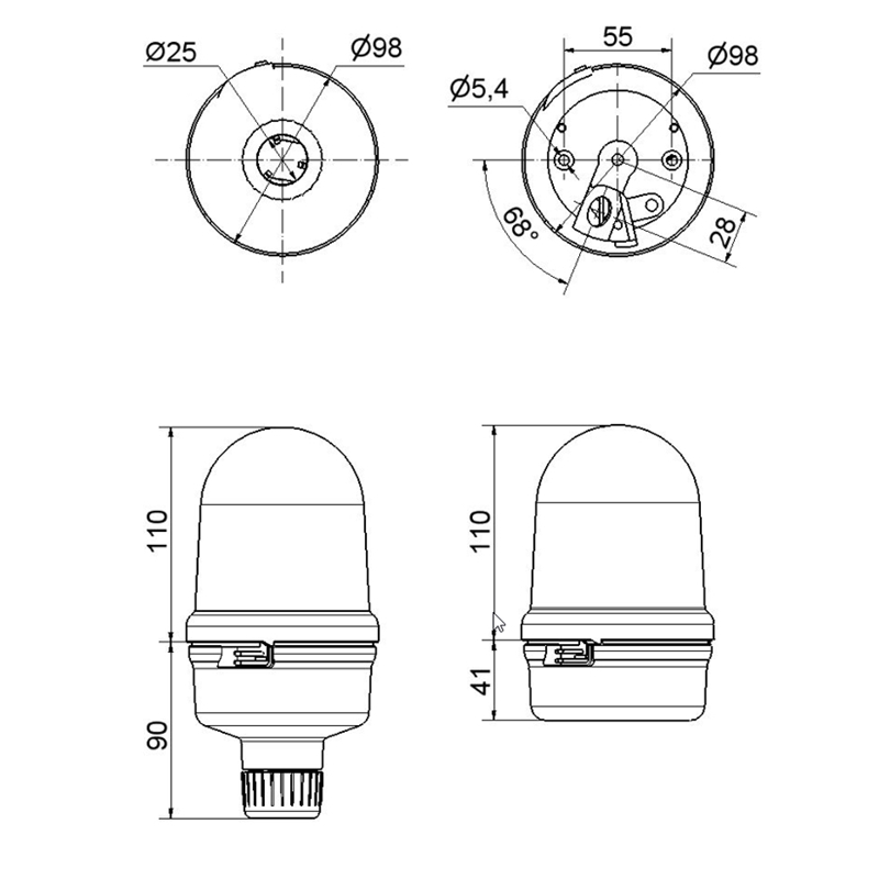 Gyrophare LED 24VAC/DC Rouge - Montage sur tube