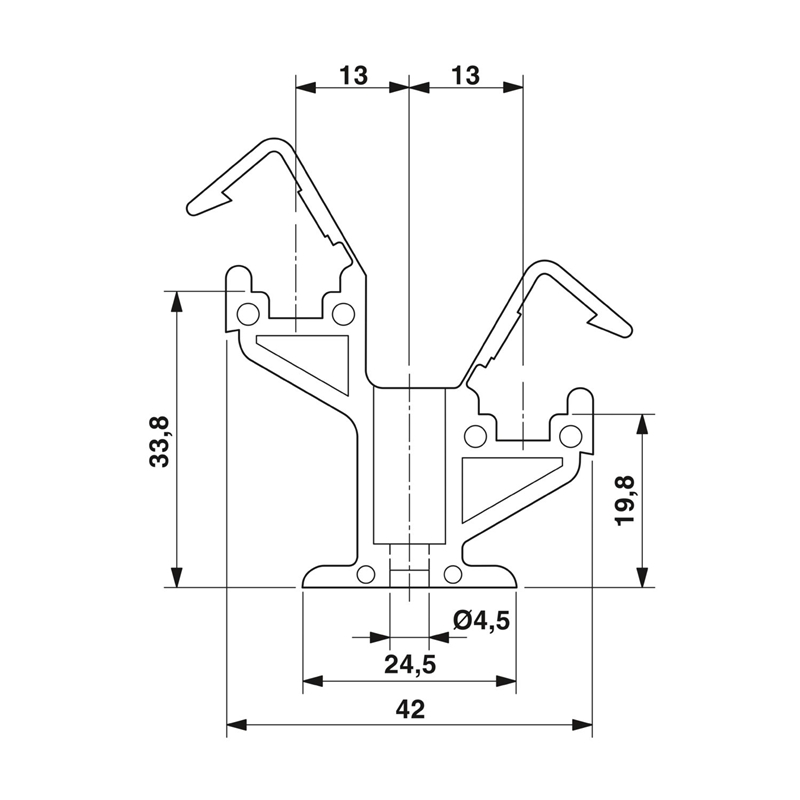 Support isolant double, utilisable au choix pour la barre collectrice 3 x 10 mm ou 6 x 6 mm, hauteur à l'état fermé : 39 mm