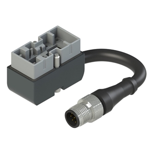 Connecteur en métal avec câble et connecteur M12, longueur du câble 0,2 m, 1NO+1NC