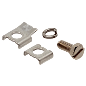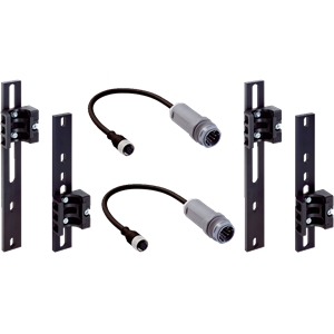 Accessoire de montage; Description : Kit de montage pour la pose alternative de la connexion FE directement sur le boîtier du scrutateur laser de sécurité; Contenu de la livraison : 2 étriers de serrage, 1 bague élastique, 1 vis à six pans creux avec fente M5 x 12