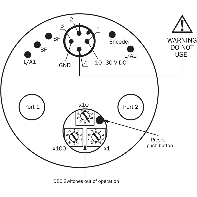 Codeur absolu; Version du codeur: Multitours; Résolution max.: 18 bit x 12 bit (262.144 x 4.096); Interface mécanique: Axe creux non traversant; Diamètre de l'axe: 10 mm; Tension d'alimentation: 10 ... 30 V DC; Interface de communication: PROFINET; Raccordement: Connecteur mâle, 1 x M12, 4 pôles, axial, Connecteur femelle, 2 x M12, 4 pôles, axial; Programmable/configurable: Via l’outil d’ingénierie API; Matériau, arbre: Acier inoxydable; Matériau, bride: Aluminium; Matériau, boîtier: Aluminium; Indice de protection: - IP65, côté arbre (CEI 60529), - IP67, côté boîtier (CEI 60529); Température de fonctionnement: –40 °C ... +85 °C; Série: AFS/AFM60 Ethernet