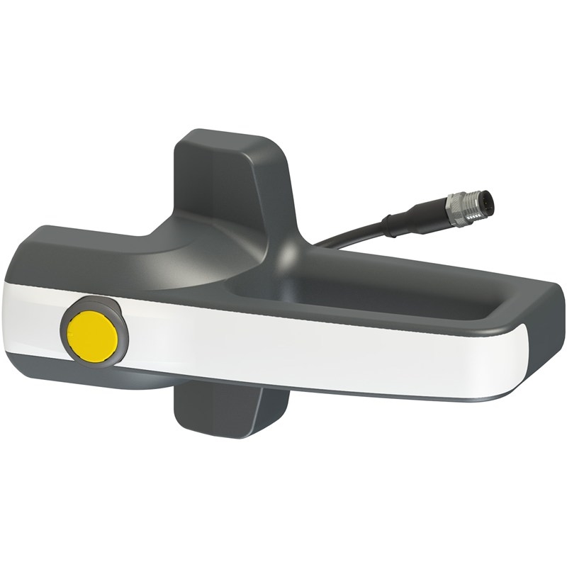 Poignée de sécurité pour les interrupteurs de la série NS, blanche LED RVB multicolore, bouton à impulsion 1NO jaune avec éclairage, M12 avec câble 0.5m