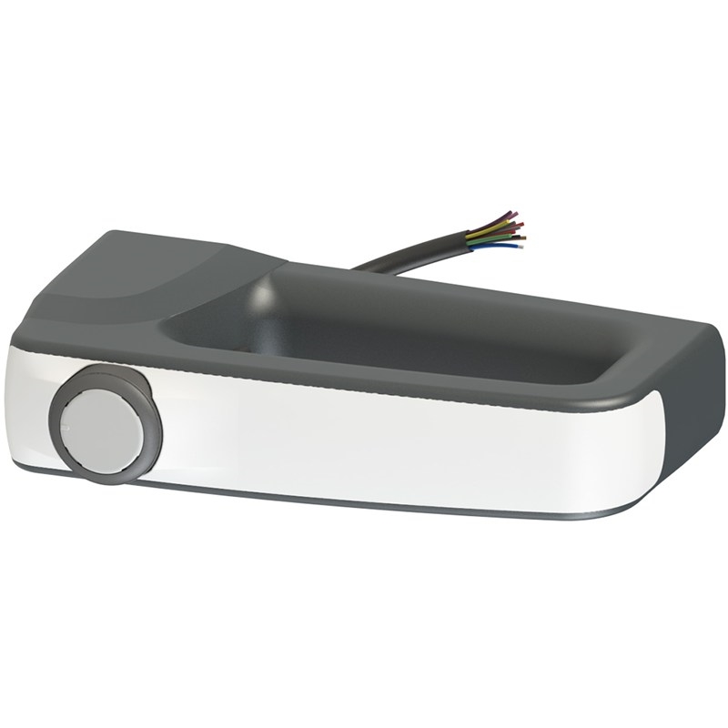Poignée de sécurité; Poignée: Poignée blanche lumineuse avec LED RVB multicolore; Type de fixation: Avec plaque métallique interne; Dispositifs de commande: Avec bouton à impulsion 1NO couleur blanche avec éclairage; Codification RFID: Sans RFID; Raccordement: Câble PVC IEC 60332-1-2 résistant à l'huile, longueur 10 m; Série: P-KUBE Smart