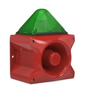 Combiné sirène 107 dB feu flash 5J 24Vcc optique verte IP66