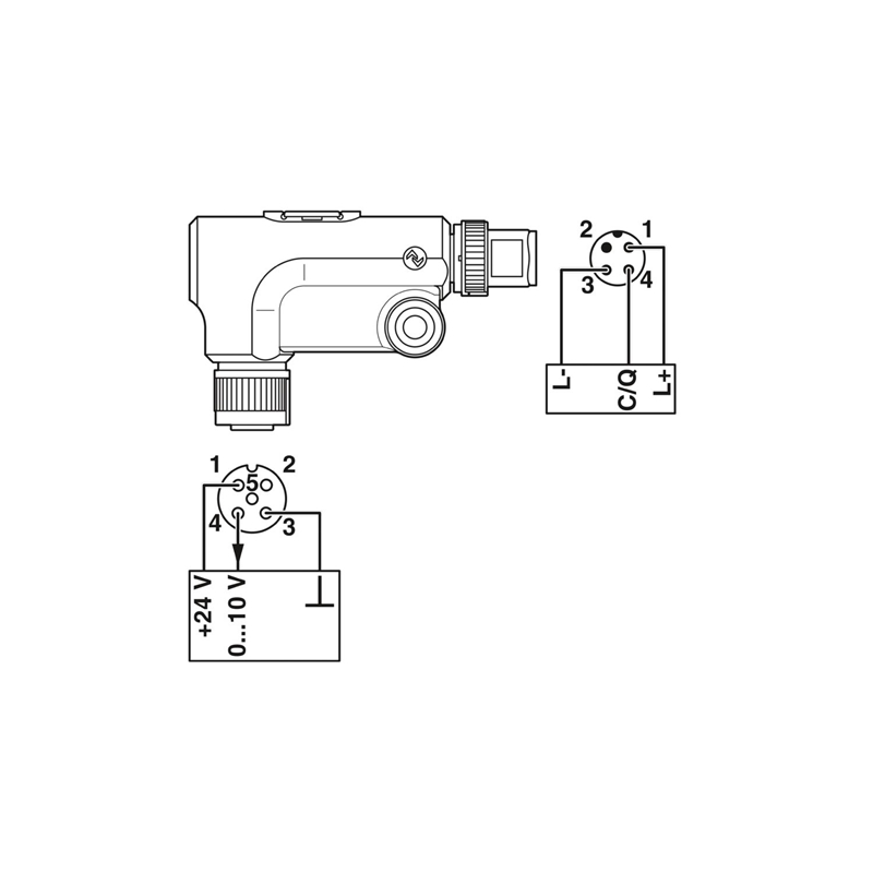 Convertisseur IO-Link/analogique Axioline E destiné au raccordement d'un actionneur analogique, 0 V ... 10 V, connecteur M12, version coudée