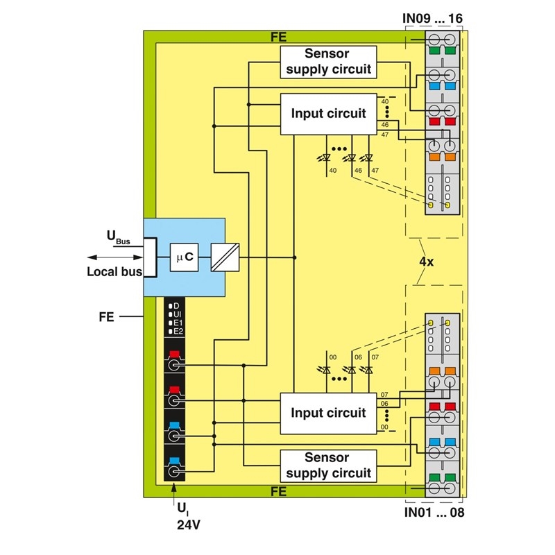 Axioline F, Module d'entrée numérique, Entrées TOR: 16, 24 V DC, connectique: 4 fils, Modèle pour conditions extrêmes, vitesse de transmission dans le bus local: 100 MBit/s, indice de protection: IP20, incl. module d'embase de bus et connecteurs Axioline F