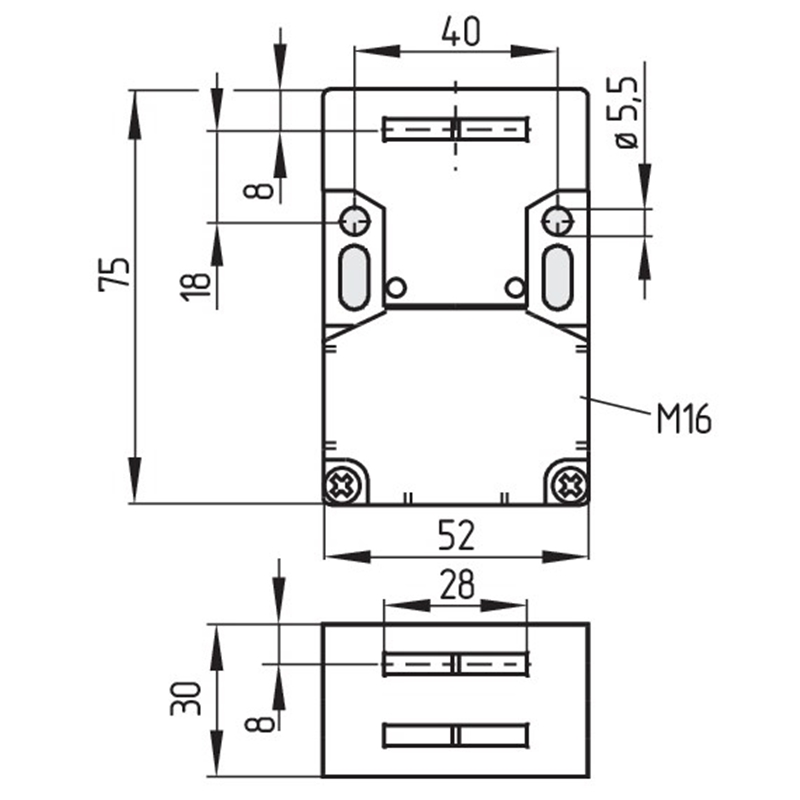 Interrupteur de sécurité avec actionneur séparé ; Codage selon EN ISO 14119: Faible; Mode d’action: Électromécanique; Force d'éjection: Oui; Utilisable pour ascenseurs: Oui; Nombre de contacts de sécurité: 1; Elément de commutation: 1 contacts NF; Principe de commutation: Action lente, contact NF à coupure positive; Matériau des contacts, électriques: Argent; Contacts de sécurité: 230VAC 4 A (AC-15), 24 VDC 4 A (AC-13); Force d'ouverture forcée, min.: 10 N; Entrée de câble: 3 x M20 x 1,5; Raccordement: Bornes à vis; Section du câble: 0,25 - 2,5 mm²; Dimensions du capteur (L x l x H): 30 mm x 52 mm x 75 mm; Matériau du boîtier: Plastique, thermoplastique ; Etanchéité: IP67; Température ambiante: -30 ... +80 °C; Série AZ 15