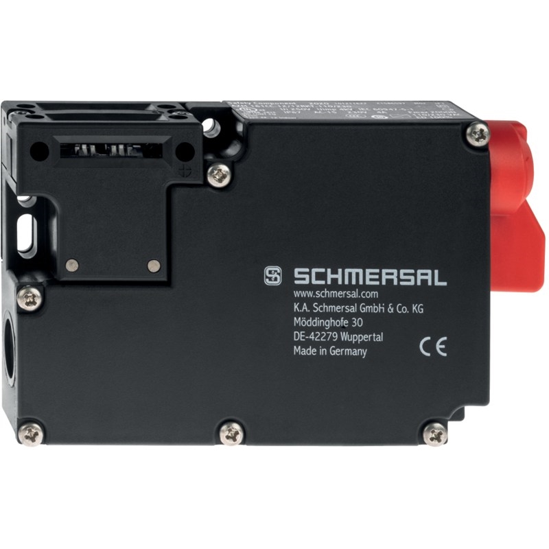 Dispositif d'interverrouillage; Niveau de codage selon ISO 14119: Faible; Mode d’action: électromécanique; Ouverture sous tension: Oui; Déverrouillage de secours: Oui; Nombre de directions d'approche: 3; Nombre de contacts auxiliaires: 2; Nombre de contacts de sécurité: 4; Élément de commutation : 2x (1NO+2NF); Principe de commutation: Action lente, contact NF à coupure positive; Matériau des contacts, électriques: Argent; Force de retenue conforme à la norme EN ISO 14119: 2 000 N; Force de retenue, max.: 2 600 N; Force de maintien: 30 N; Actionneur: Non inclus; Déverrouillage de secours: Latéral et côté couvercle; Tension assignée d'alimentation: 110-230 VAC; Raccordement: Bornes à vis; Entrée de câble: 4 conduits, M 16 x 1.5; Dimensions (L x l x H): 30 mm x 130 mm x 90 mm; Matériau du boîtier: Plastique, thermoplastique; Etanchéité: IP67; Température ambiante: -30 ... +60 °C; Certificats: IFA, cULus, CCC; Série: AZM 161