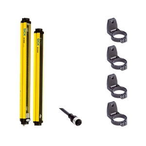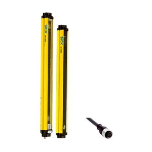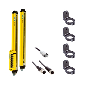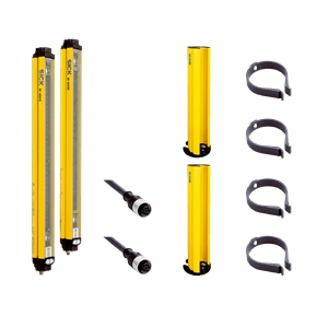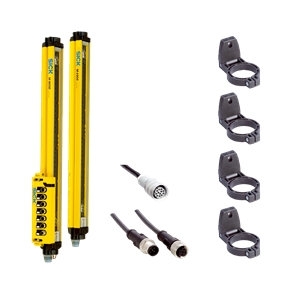 Barrière immatérielle de sécurité multifaisceaux; Version: Standard Muting, compact sans zone morte; Fonctions: Protection du corps, Inhibition, 4 faisceaux; Pièce du système: Émetteur + Récepteur; Portée: 0,5 … 15 (par défaut); 5 … 70 (longue portée sélectionnable); Nombre de...