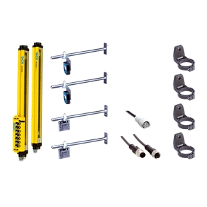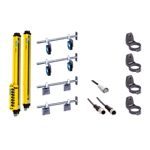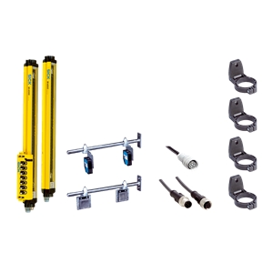 Les barrières immatérielles de sécurité multifaisceaux sont des dispositifs de protection sans contact avec deux ou plusieurs faisceaux. Si l'un des faisceaux au moins est interrompu, un signal de coupure sera envoyé à la machine afin que l'état dangereux qui menace soit stoppé. Un système est constitué d'un émetteur et d'un récepteur. Dans les systèmes de type actif/passif, l'émetteur/le récepteur sont placés dans un boîtier et un miroir placé du côté passif assure le renvoi faisceau lumineux.